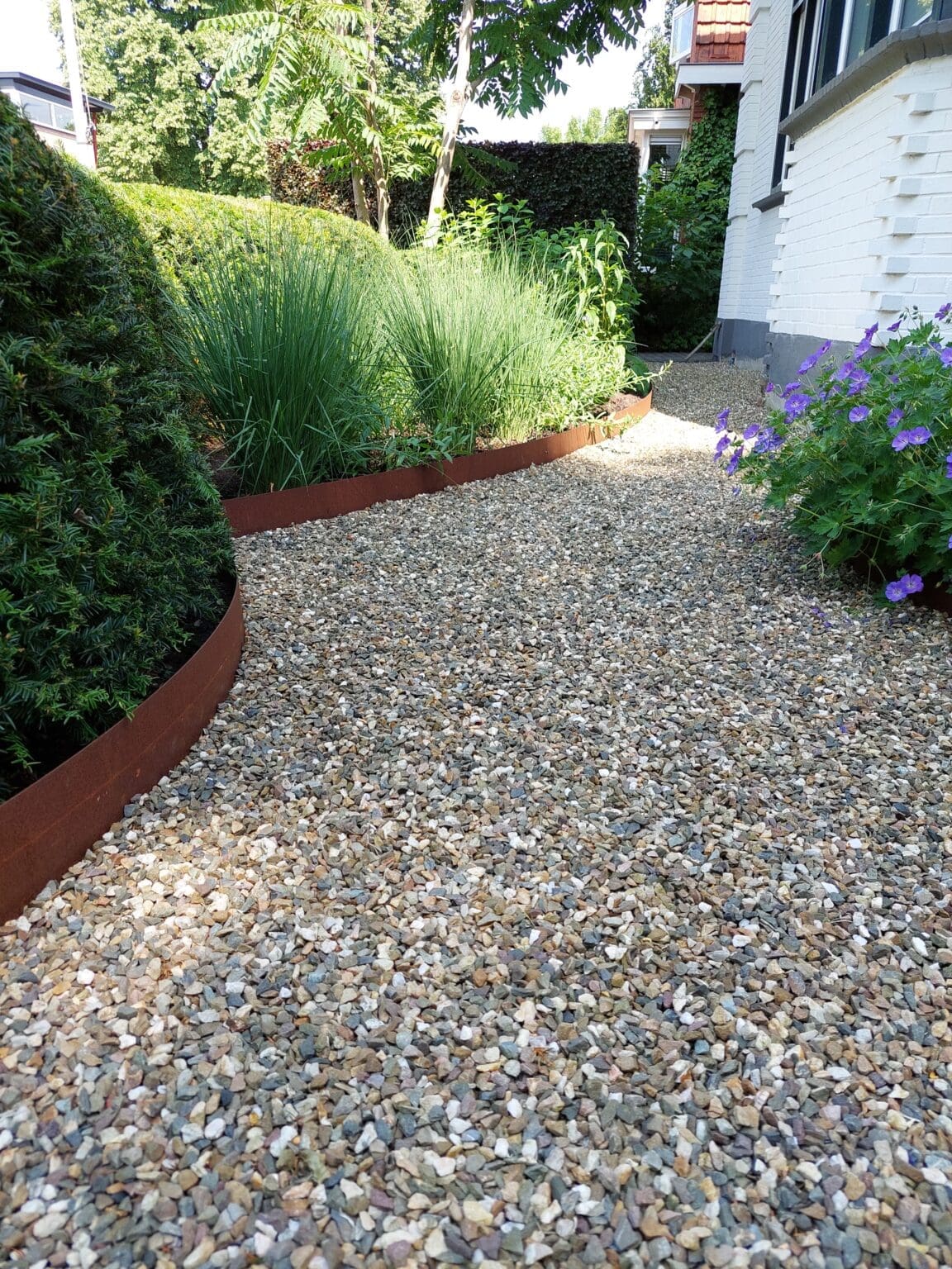 Strakke voortuin met natuurlijke lijnen